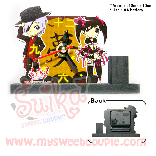 | | Gothic Couple Mini Table Clock | | Code | : S0108 | | Category | : Table Clock | | Status | : Available | | Contributor | : Kuri | | -- | | Economic mini table clock to sweeten your table ^^ Japanese Harajuku style lovers would really love this table clock for giving more spirit in studying or working. Don't hesitate to buy this for you or for giveaways to your beloved ones ! Hurry, before sold out ! | | Price : Rp 35.000 |  | | |